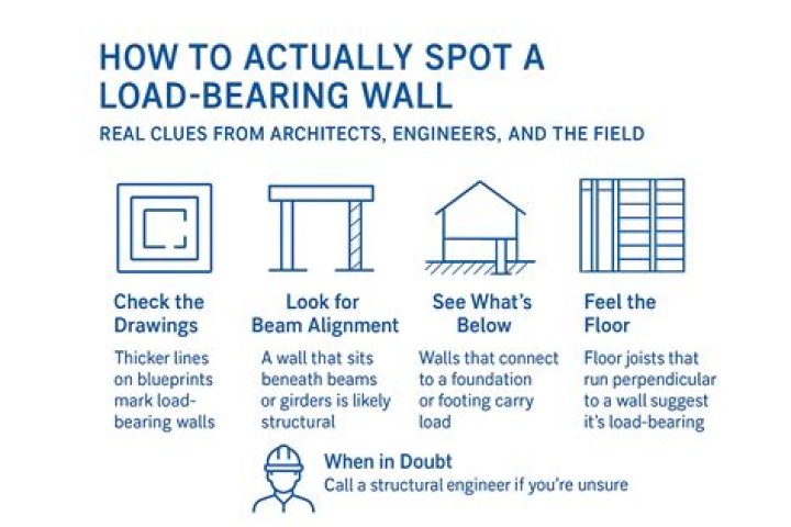 One common check is to simply knock on the wall and see if it sounds hollow. Load-bearing walls are usually solid, whereas stud partition walls are hollow.