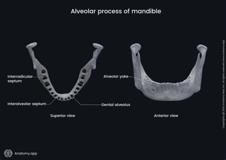 On the maxilla, the alveolar process is a ridge located on the inferior surface. On the mandible, it is a ridge located on the superior surface. It comprises of the thickest part of the maxillae. The alveolar process includes a region of compact bone that is adjacent to the periodontal ligament (PDL).