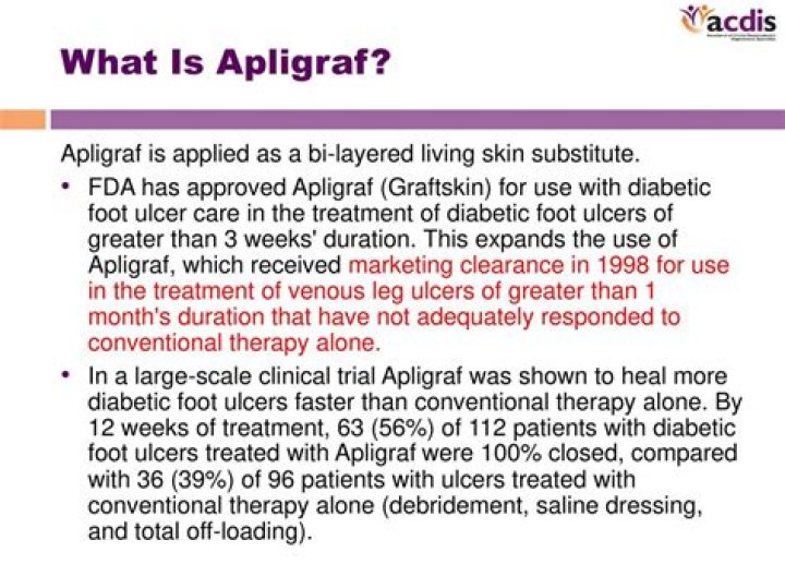 FDA Approves Apligraf for Use in the Treatment of Diabetic Foot Ulcers. New York (MedscapeWire) Jun 23 – The Food and Drug Administration (FDA) has approved Apligraf (Graftskin) for use with conventional diabetic foot ulcer care in the treatment of diabetic foot ulcers of greater than 3 weeks’ duration.