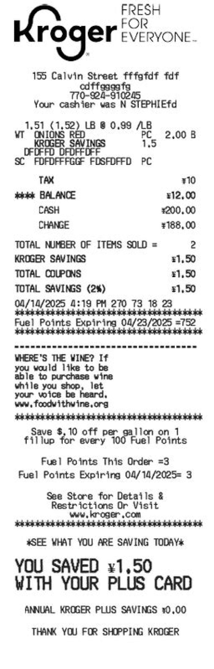 Over $10.00 will receive a Kroger Co. Family of Stores Merchandise Gift Card. The return slip must be signed by all customers with returns over $10.00. Under $10.00 the customer will receive cash for their returns.
