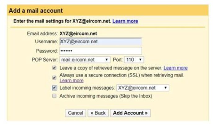 Sign-in to Gmail using your new username and password.Click the ‘Settings’ button at the top-right of the screen. At the top of the screen, click on ‘Accounts and Import’. This opens a pop-up window. The next page will ask you to fill in details about your Eircom.net account.