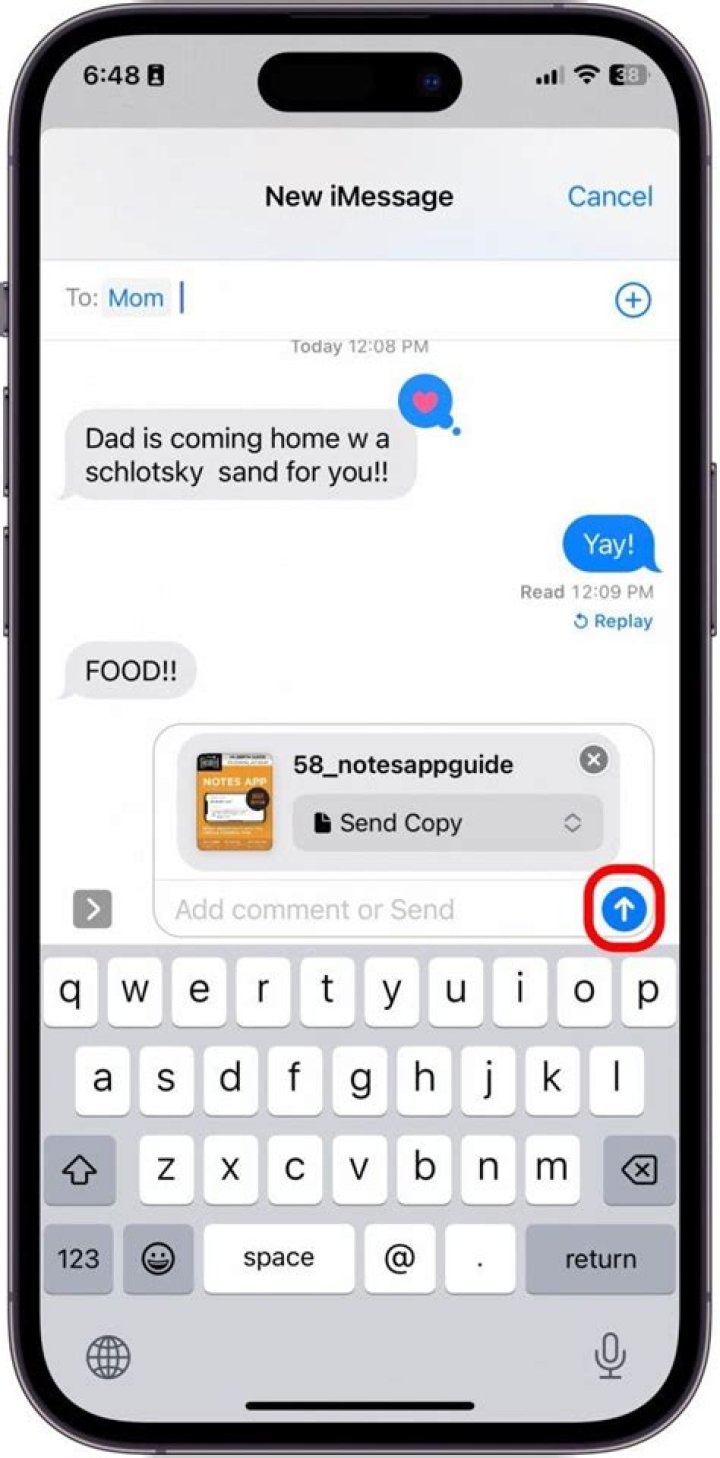 Just put in their number like normal. As long as they also have iMessage and you both have a data connection, you’ll be able to send it.