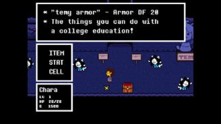 The protagonist cannot obtain this on the Genocide Route as the option to pay for college is replaced with 鈥減remiem鈥 Temmie Flakes. After unlocking the Temmie Armor, the Temmie Shopkeeper explains that while the armor is amazing, it can and will ruin the experience of combat.