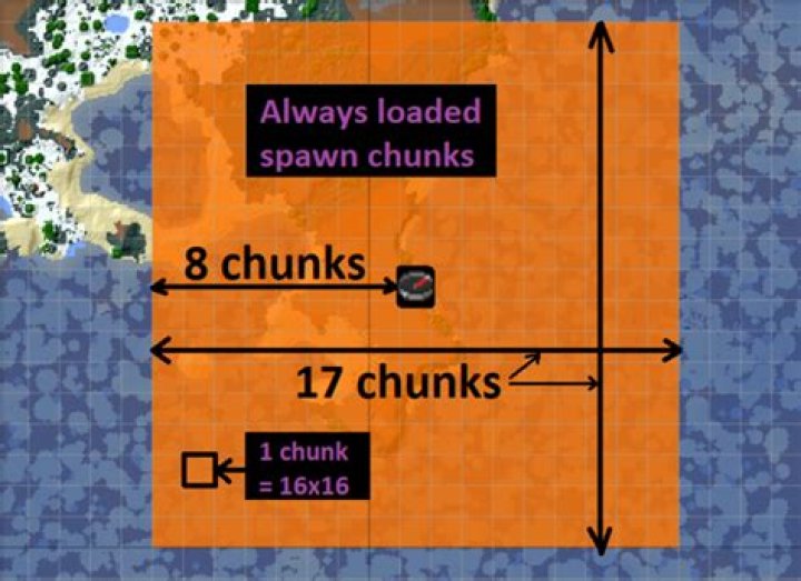 The spawn chunks usually consist of an area of 16×16 chunks centered as close as possible to the world spawn point. Entities are only active if all chunks in an area of 5×5 chunks around them are loaded, limiting their activities to an effective area of 12×12 chunks around the world spawn point.