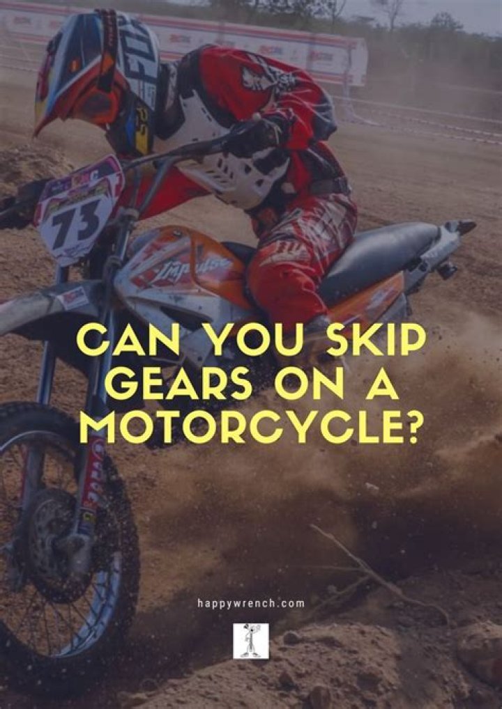 You can skip gears on a motorcycle. It is possible to safely skip multiple gears while downshifting or upshifting. However, to be able to properly skip gears on a motorcycle without that putting the rider in danger, the engine speed, wheels speed, and gear should all be appropriately matched.