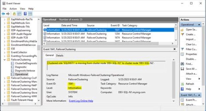 You can also use Event Viewer to open a log related to failover clustering. To locate the log, in Event Viewer, expand Applications and Services Logs, expand Microsoft, expand Windows, and then expand FailoverClustering. The log file is stored in systemrootsystem32winevtLogs.