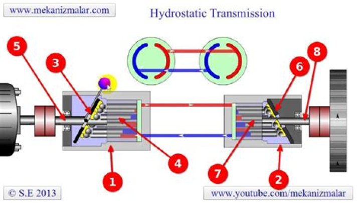 Hydrostatic transmissions include mechanical parts such as a differential and a drive axle, plus rubber or metal hoses the liquid is pushed through. Failure of any mechanical component, a broken hose, or clogged filter will cause tractor hydrostatic transmission problems.
