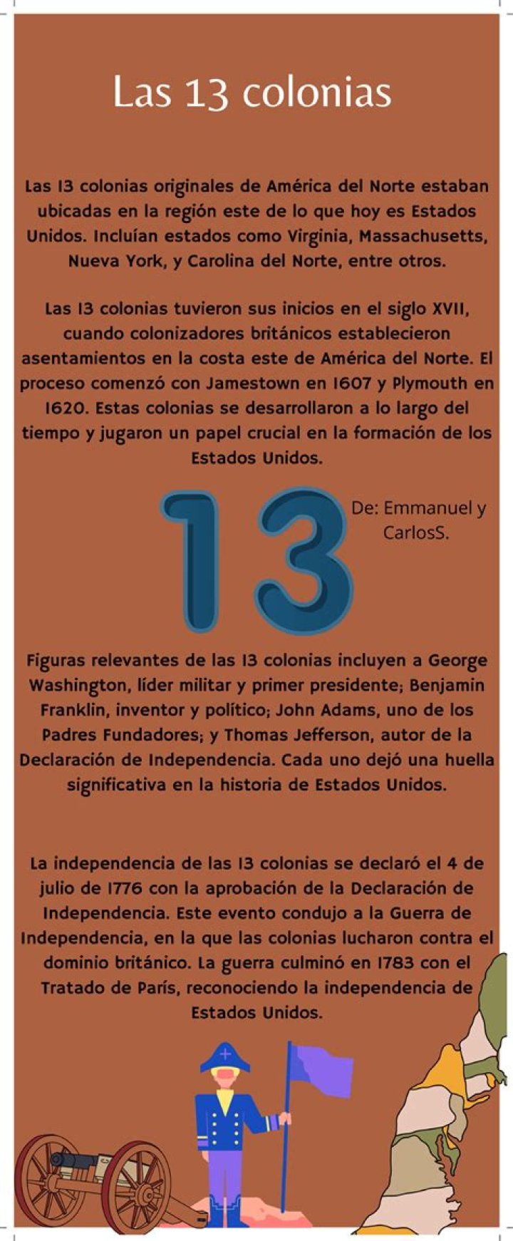 Son las primeras 13 colonias que se crearon en EEUU (Estados Unidos) por los colonos británicos permanentes que se fueron multiplicando (aumentando su población) hasta formar las 13, la primera colonia fue creada en 1607, en estas había personas de diferentes religiones que en su tierra natal eran perseguidas para