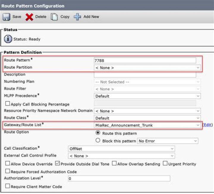 In Cisco Unified Communications Manager Administration, use the Call Routing > Route/Hunt > Route Pattern menu path to configure route patterns. A route pattern comprises a string of digits (an address) and a set of associated digit manipulations that route calls to a route list or a gateway.