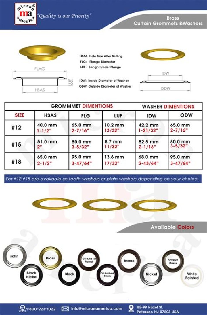 Curtain grommets come in many different sizes, colors, and materials to match your decor. Smaller fashion grommets, to use on shower curtains, tents, backpacks, purses, clothing, costumes, and duffle bags, are also available.