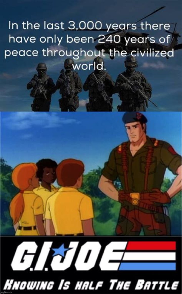 G.I. Joe was an action figure who, to placate parents, ended each of his 1980s cartoons with the PSA, “Now you know. And knowing is half the battle…” The PSA was given within the context of something dangerous kids did unintentionally – like running out into traffic.