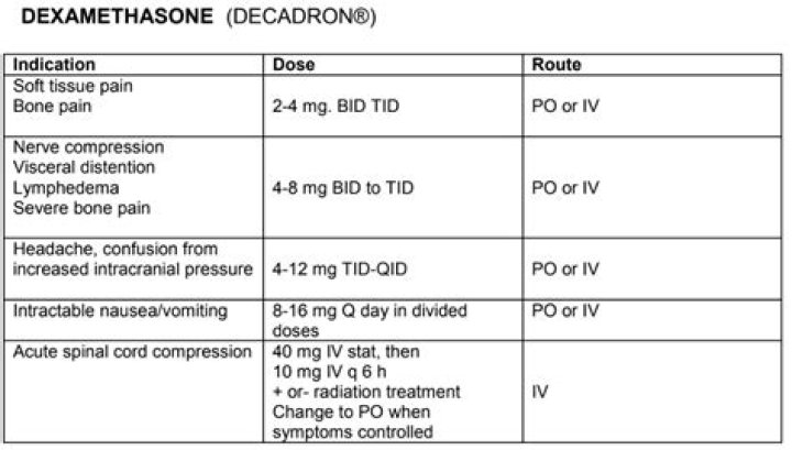 Note: Consider taper after 7 days of therapy; taper slowly over several weeks (Ryken 2010; Vecht 1994). Mild symptoms: IV, Oral: 4 to 8 mg/day in 1 to 4 divided doses (Chang 2019; Vecht 1994). Note: Consider taper after 7 days of therapy; taper slowly over several weeks (Ryken 2010; Vecht 1994).