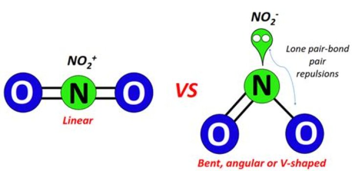 Why are NO2 and CO2 different shapes? two N=O double bonds and no unpaired electrons, so repulsion between the two regions of electron density is minimised by the 180° bond angle, and it is linear, as with CO2.