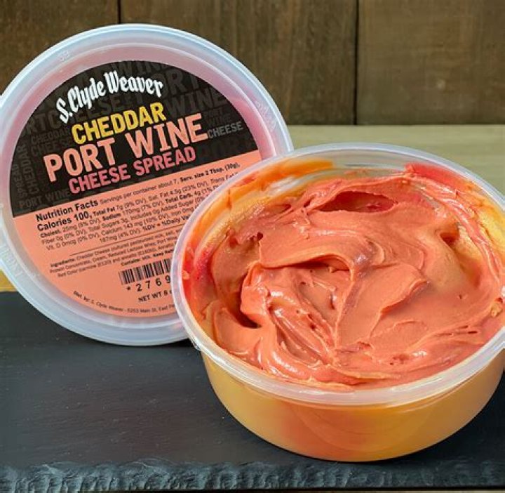 Port Wine cheese is a combination of sharp cheddar, cream cheese, and port wine. The cheese mixture creates an orange and reddish color because of the addition of the port wine.
