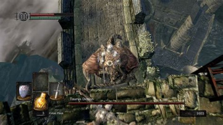 The Taurus Demon is one of the Bosses found in Dark Souls. This optional boss is located in the Undead Burg. The easiest way to kill this boss is to simply run between his legs, attack him with melee and drive him to the side of bridge, he will fall off and die and you will (hopefully) still have full health.