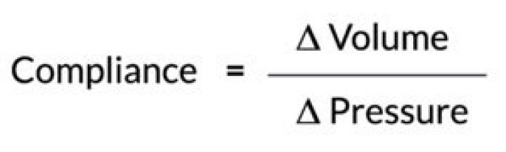 Compliance = Volume/ Pressure. Static Compliance (CST) is expressed in mL/cmH2O. “Stiff lungs” are said to occur when CST is