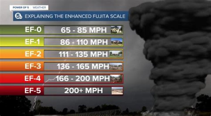 The Enhanced Fujita Scale or EF Scale, which became operational on February 1, 2007, is used to assign a tornado a ‘rating’ based on estimated wind speeds and related damage.