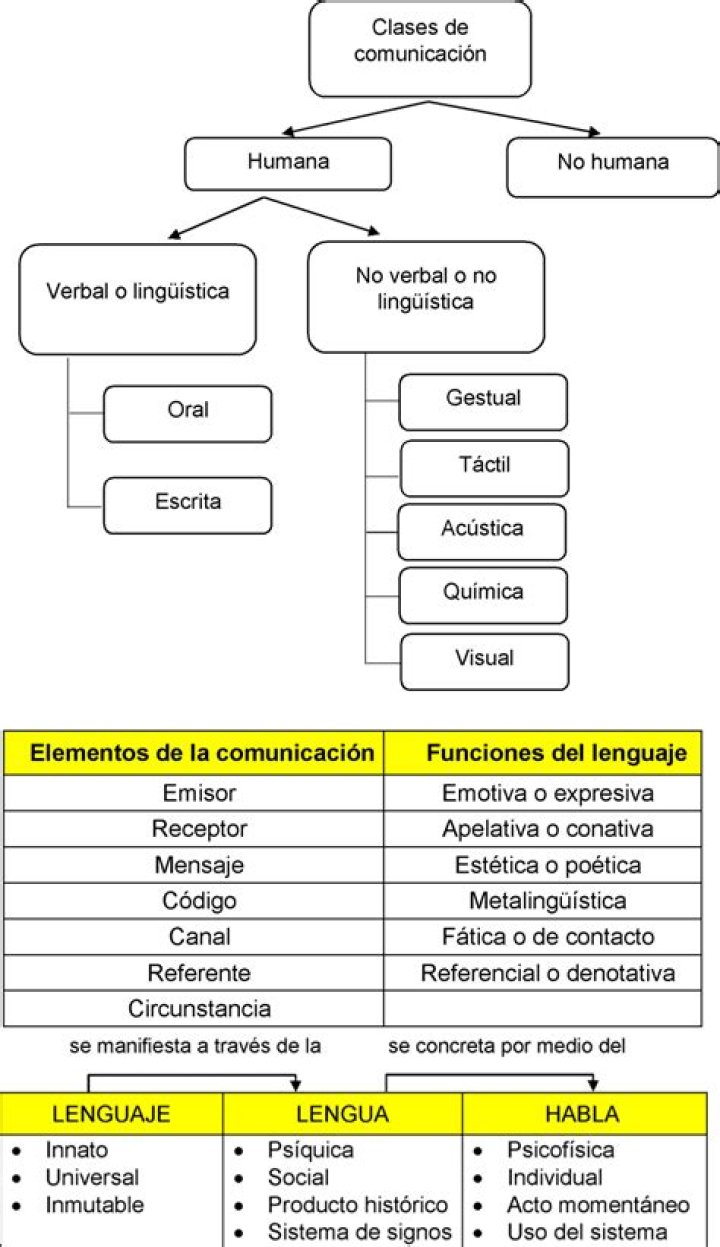 Emisor: la persona que emite un mensaje.Receptor: la persona que recibe el mensaje.Mensaje: la información que quiere ser transmitida.Canal: medio por el que se envía el mensaje.Código: signos y reglas que se emplean para enviar el mensaje.