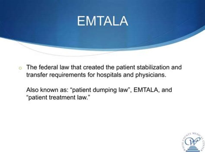 Enacted in 1986, the Emergency Medical Treatment and Active Labor Act, commonly known as EMTALA, is a Federal law that requires anyone coming to almost any emergency department to be stabilized and treated, regardless of their insurance status or ability to pay.