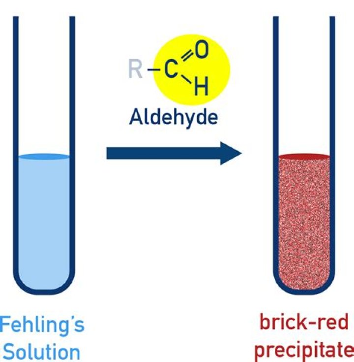 Fehling’s solution is a deep blue alkaline solution which is used to identify the presence of aldehydes or groups that contain any aldehyde functional group -CHO and in addition with Tollen’s reagent to differentiate between reducing and non-reducing sugars.