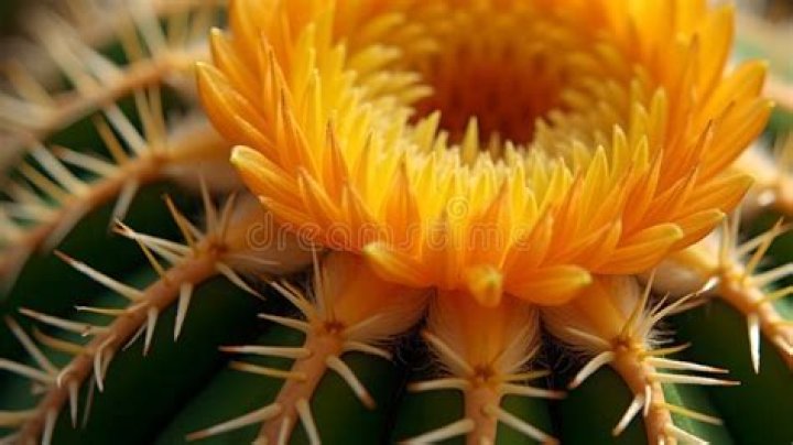 Barrel cactus buds typically start to bloom in April with a bright yellow or orange flower. Pink and red varieties also exist but occur less frequently. The flowers only appear on the very top of the plant.