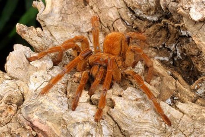 The Goliath Birdeater (Theraphosa blondi) belongs to the Tarantula family and, weighing in at up to six ounces, is the most massive spider in the world. It can grow to be up to 11 inches in diameter, has a fist-sized body, and is second in leg length only to the spindly Great Huntsman.