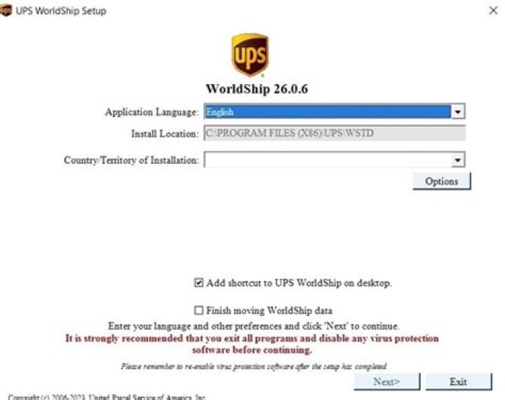 Select the Support tab, then select the WorldShip® icon, and then choose About UPS WorldShip. The software version should be 24.0.