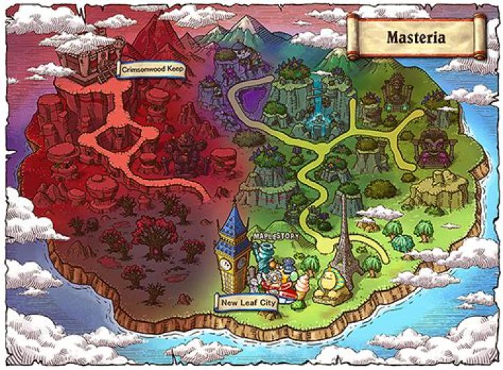 Masteria is a World Tour region based on many areas of the world. The three towns on the continent are New Leaf City, built on the remnants of Olde Sapp Village, Haunted House, also known as the Prendergast Mansion (which was closed down as of March 2016), and Crimsonwood, the newest area to be released.