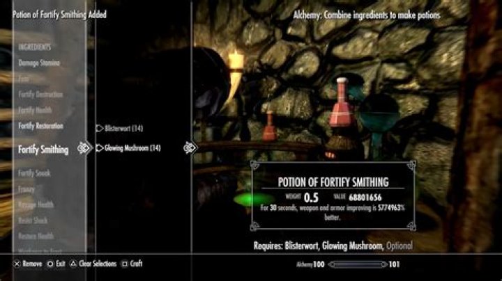 The following alchemy ingredients can be used to create a potion of Fortify Smithing: