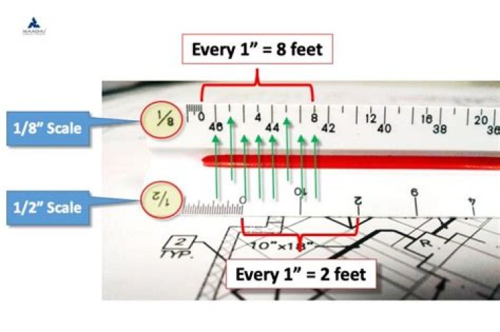 A 1/4″ scale means that each 1/4″ (inch) on the plan counts for 1′ (feet) of actual physical length. To scale a blueprint in imperial units to actual feet. multiply the measurement on the drawing (in inches decimal equivalent) with the denominator.