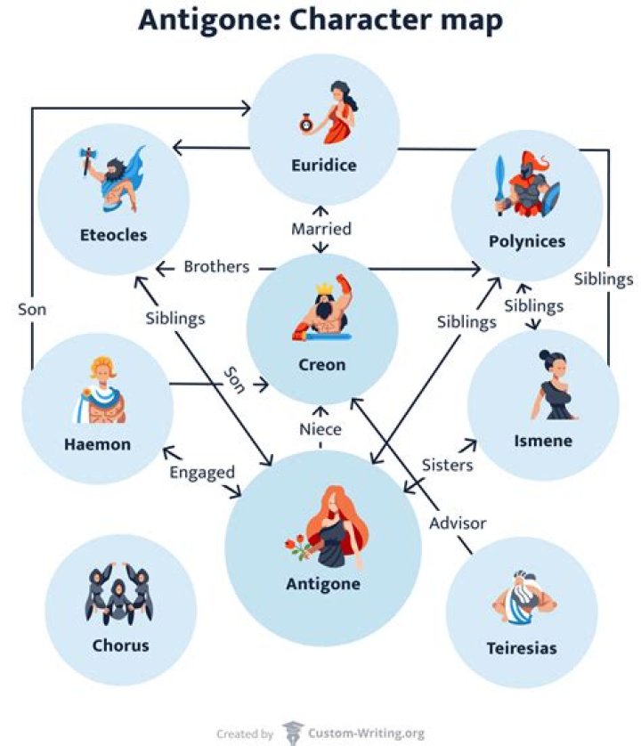 Creon punishes Antigone to death. Haemon- He is Creon’s son. Haemon is supposed to marry Antigone, however, when Creon banishes Antigone to her death, Haemon runs off. He is later found, dead by her side, after committing suicide for his lost love.