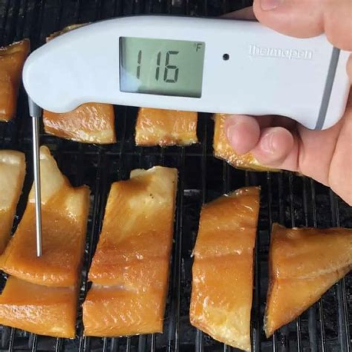 For salmon, we recommend maintaining your smoker at a temperature of 250-275 degrees Fahrenheit, and smoking the salmon for about one hour. You will need an Instant Read Meat Thermometer to check if the salmon is done.