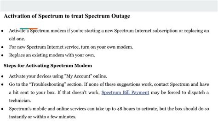 How long does it take for Spectrum modem to activate?