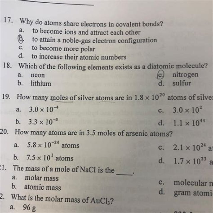 1. The number of atoms in 2.0 mole Al is A. 2.0 Al atoms.