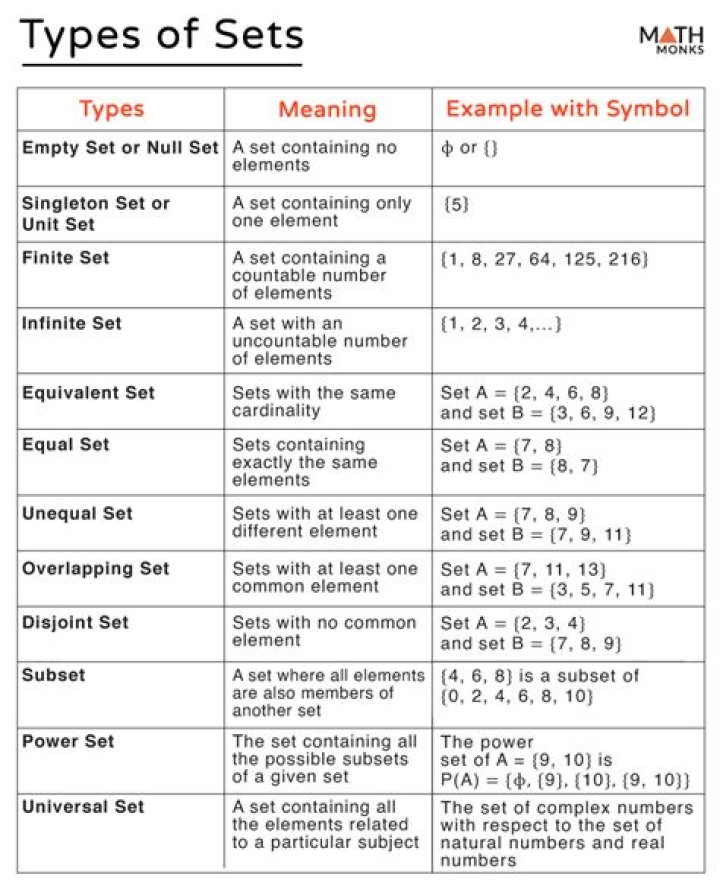 A subset is a set whose elements are all members of another set. The symbol “⊆” means “is a subset of”. The symbol “⊂” means “is a proper subset of”. Example. Since all of the members of set A are members of set D, A is a subset of D.