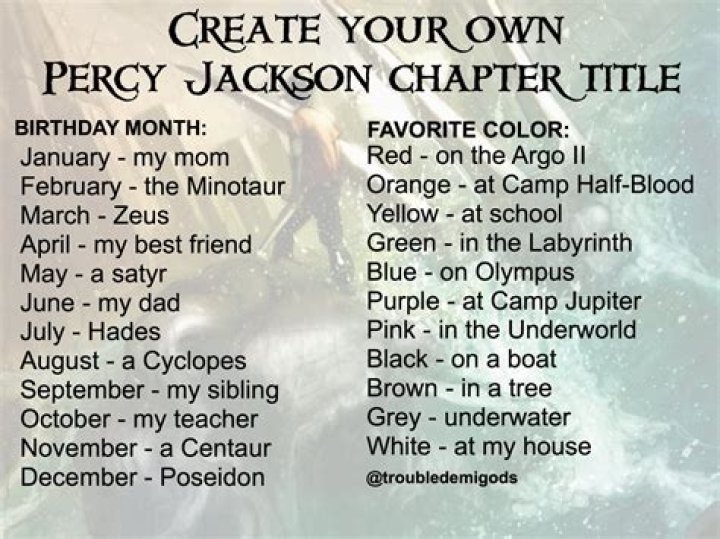 Perseus “Percy” Jackson is an eighteen-year-old Greek demigod, the son of Poseidon and Sally Jackson. He is the main protagonist and narrator of the Percy Jackson and the Olympians series, and one of the main characters of The Heroes of Olympus series.