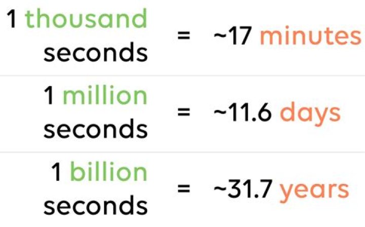 A billion seconds ago was 32 years ago. And a trillion seconds ago was 32,000 years ago!