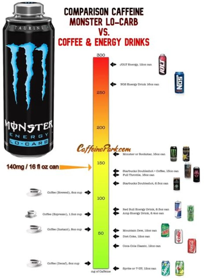 Energy drink companies have largely dialed back their caffeine content (a 16 oz can of Monster Beverage energy drink, for example, contains a relatively modest 160 milligrams).