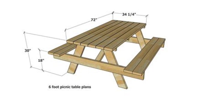 Picnic tables come in a variety of shapes and sizes鈥攈ere a wooden rectangular picnic table designed for 4-6 people. Rectangular picnic tables are commonly dimensioned at 72鈥 (183 cm) in width, 58.75鈥 (149 cm) in depth, an overall table height of 30.5鈥 (78 cm), and a bench height at 17鈥 (43 cm).