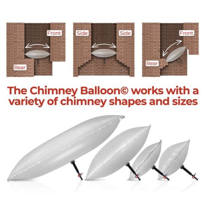 The Chimney Balloon is designed to inflate and push against all four walls of the chimney, holding itself firmly in place. There is a small vent in the side of the product which allows some airflow, permitting your chimney to “breathe”.