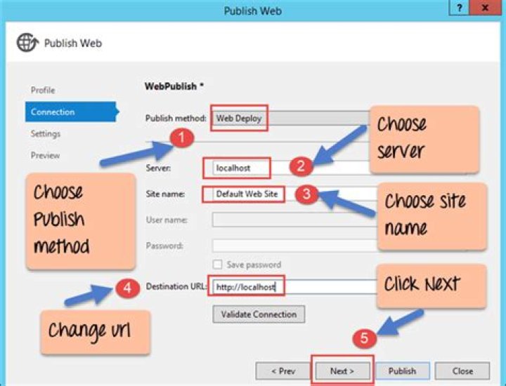 Web Deploy. Provide the necessary connection details and choose Finish.Web Deploy Package. Click Browse to open a Select Package Location dialog box and enter the path to where you want the package to be created, including the . Finish the Publish wizard.