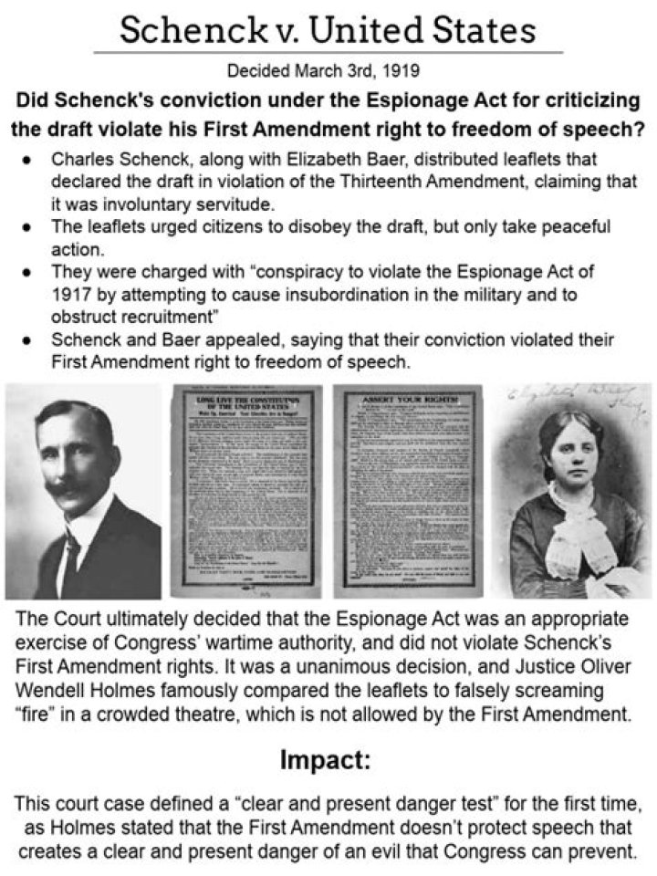 “in schenck v. united states (1919), check these out | What happened in the Schenck v U.S. case?