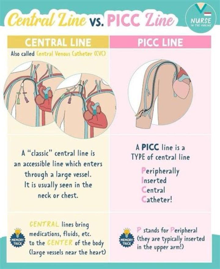 is a picc line the same as a central line, check these out | Can you have a central line and a PICC line?