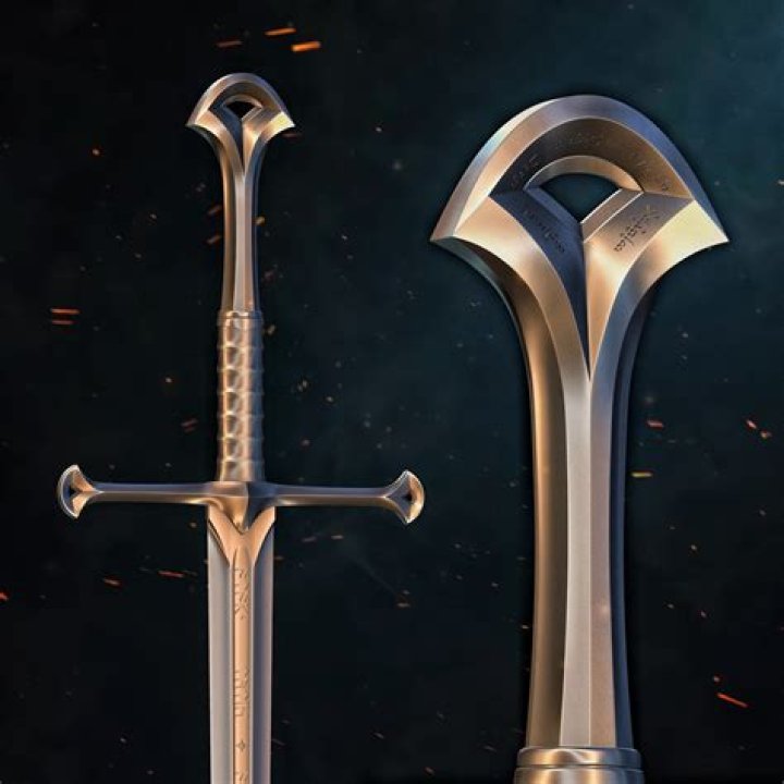 Narsil was a longsword, also forged by Elves, that belonged to King Elendil, who used it during the War of the Last Resistance. Narsil was broken during the battle and its pieces and shards were ultimately inherited by Aragorn.