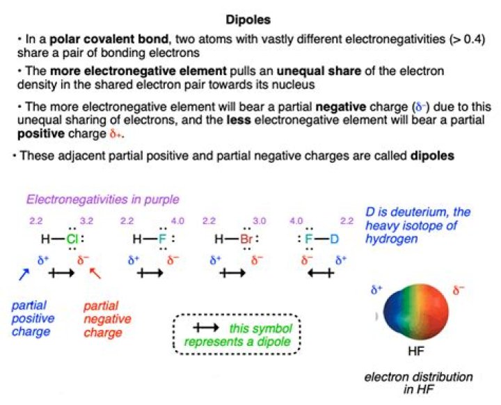 Due to their different three-dimensional structures, some molecules with polar bonds have a net dipole moment (HCl, CH2O, NH3, and CHCl3), indicated in blue, whereas others do not because the bond dipole moments cancel (BCl3, CCl4, PF5, and SF6).