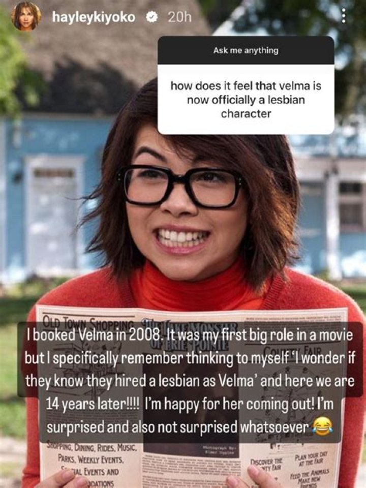 Hayley Kiyoko Alcroft (born April 3, 1991), known professionally as Hayley Kiyoko, is an American actress, singer and dancer. She is best known for playing Velma Dinkley in Scooby-Doo! The Mystery Begins and Scooby-Doo!