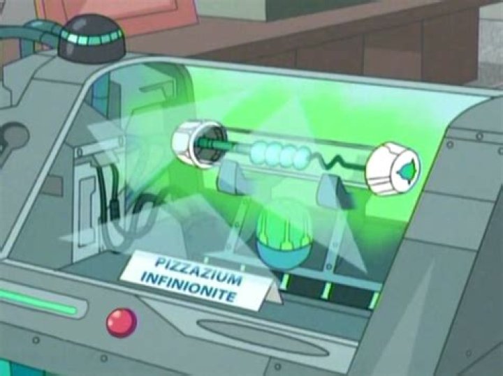 Pizzazium Infinionite is the chemical element with atomic number 104 and atomic weight of 261, from Phineas and Ferb and shown in Milo Murphy’s Law.