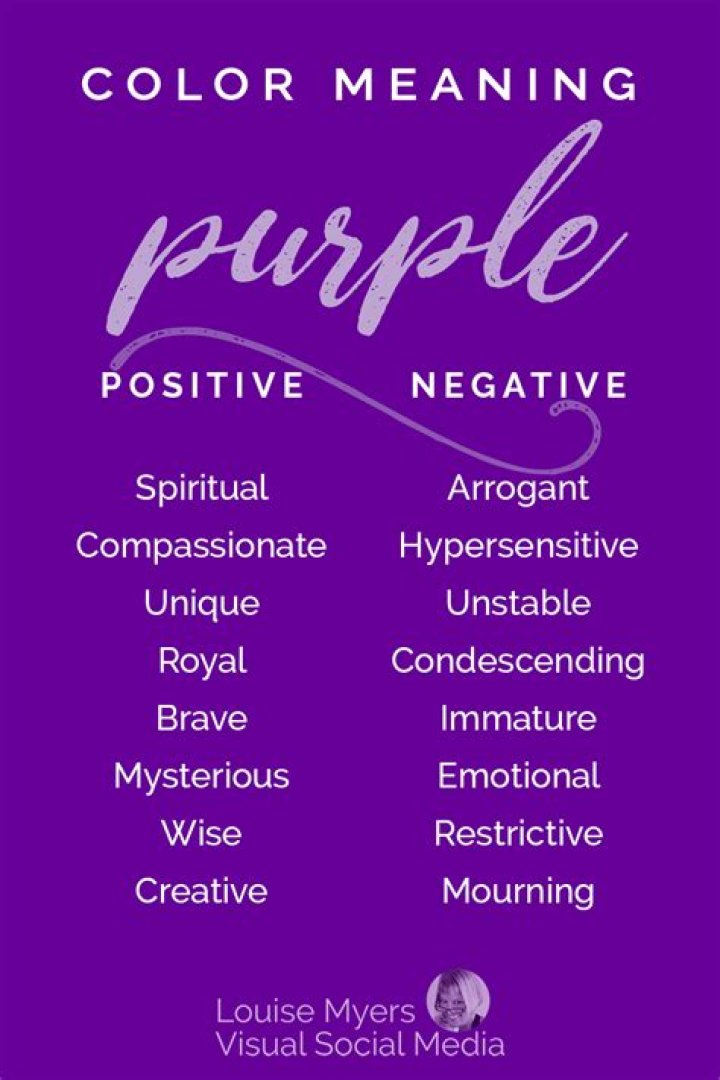 The negative meanings of purple are decadence, conceit, and pomposity. Purple is also a color of mourning. One of the most significant aspects of purple’s symbolism is the generational divide.