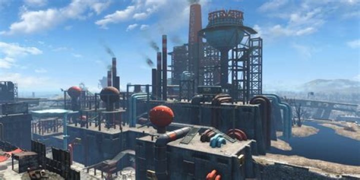 To reach it, you’ll need to climb the numerous catwalks which span above the outside of the plant toward the huge blue sphere perched atop the facility. A lone raider guards the top of a red tower on the East side of the plant, which has an explosive box and chems on the top.