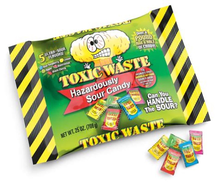 1. Toxic Waste. Buckle up for the sourest candy in the world! Sold mostly in the U.S. and Canada, Toxic Waste Hazardously Sour Candy has inherited the extreme candy hype once dominated by Warheads.